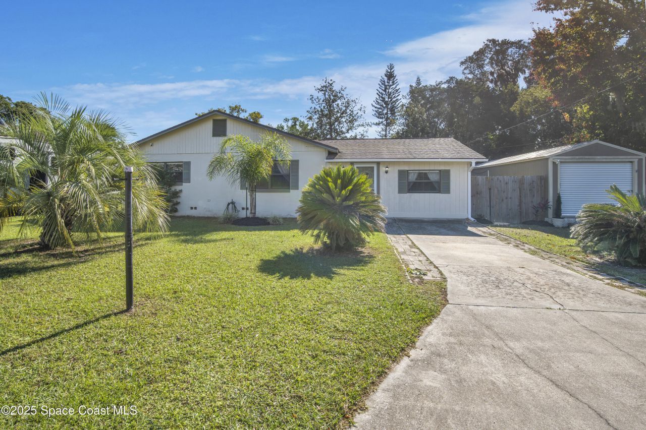 BRING ALL OFFERS! Welcome to this cozy 3-bedroom, 1-bath home in the heart of DeBary! Enjoy wood and tile flooring, a fully fenced expansive backyard, and three sheds?two with electricity and one featuring an office/flex space with A/C. Inside, the main living area leads to a primary bedroom with barn door and walk-in closet, plus access to the laundry/storage room. Two additional bedrooms and a full bath sit down the hall. The kitchen offers solid wood cabinets, stainless and black appliances, and ample storage, opening to a dining area with sliders to the screened patio. Outside, mature trees create a peaceful setting with space for pets, gardening, or future projects?including a large shed with outdoor sink that could become a detached in-law suite. Updates include a 2018 roof, newer A/C, pumped septic, new electrical panel, and updated fixtures with camera wiring. NO HOA and close to SunRail, parks, lakes, schools, shopping, and dining.