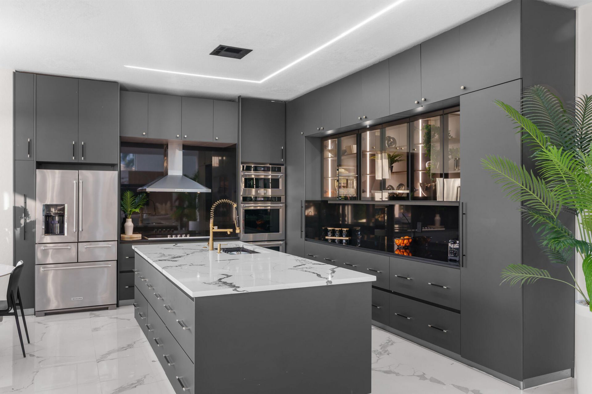 Beautifully renovated 6-bedroom, 4-bathroom home featuring high ceilings and a bright open layout. The home offers 48x48 porcelain tile flooring, a spacious gourmet kitchen with KitchenAid appliances, custom cabinetry, and large living areas perfect for entertaining. The primary suite includes a private balcony, spa-style bathroom, and custom walk-in closet. A guest bedroom with full bath is located downstairs with direct access to the backyard. Enjoy the oversized backyard with beautiful landscaping and gazebo, wide driveway, motion-light staircase, and plenty of space for a pool. Move-in ready with modern upgrades throughout.