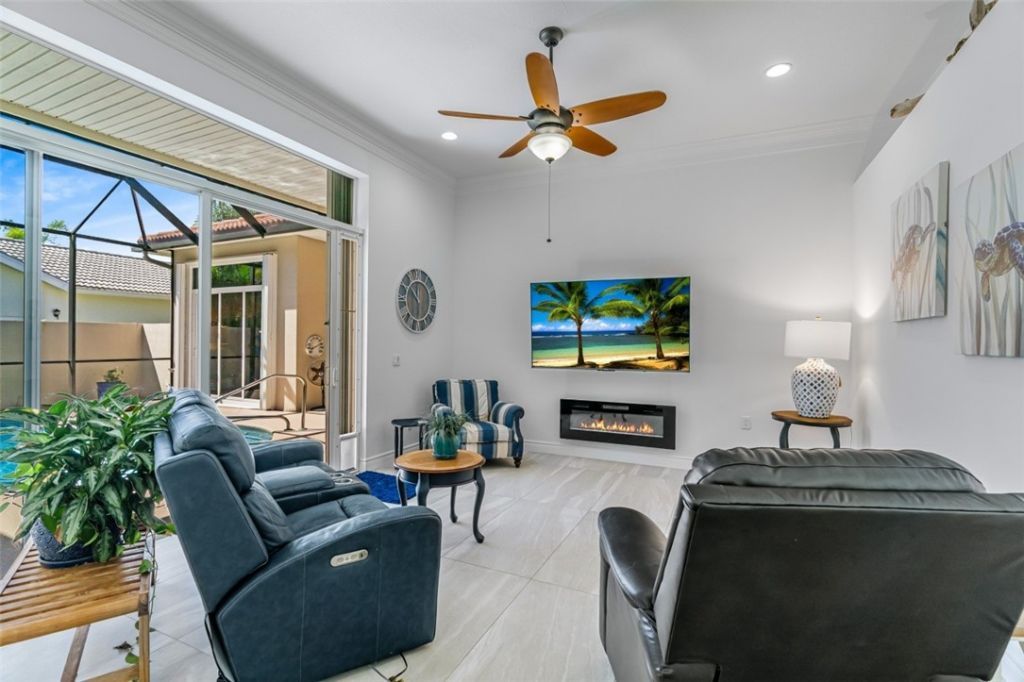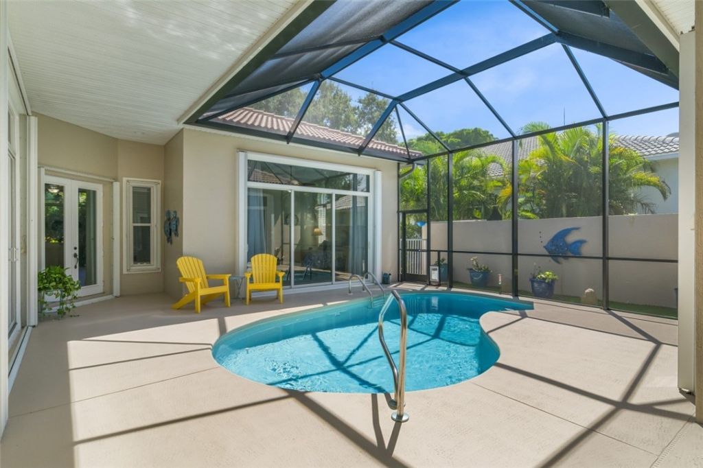 Rare renovated gem! 2024 tile roof. Coveted courtyard pool plan w/casita +kitchenette acts like guest house, caregivers, gym/office! Extensive coastal blue + white reno incl island kitchen white shaker cabs, quartz counters, SS appliances, pantry; large format tile + Portuguese tile floors, new bathrooms, faucetry. Epoxy garage w/storage; enclosed rear patio + courtyard! Move-in ready lock/leave, gated community! $460/M dues incl yard, 2 clubhouses, fitness, tennis, day dock, private beach! 15 mins N/S to Ocean Dr or Causeway to soon-to-open Publix!