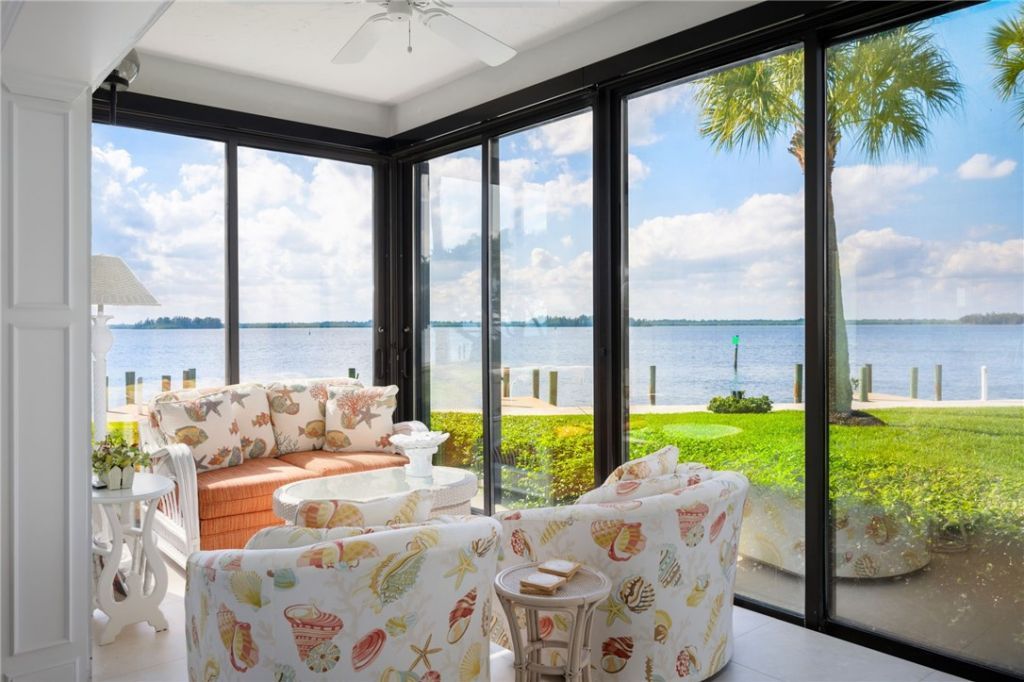 STUNNING Forever Views beckon as you enter! You will never get tired of watching sunsets, boats, dolphins, manatees & wildlife play just outside your door. Convenient 1st floor location allows you to walk out your enclosed porch & fish off your dock. Spacious split floor plan with 3 BDRMs, 3 full BAs & views of water thru-out. Comfortably updated & being sold FULLY FURNISHED so you can start using & enjoying immediately! Spinnaker Point provides 1 car garage w/storage, HTD pool & spa plus access to the Moorings private beach w/parking. 1 small pet (up to 20 lbs.) allowed w/board approval.