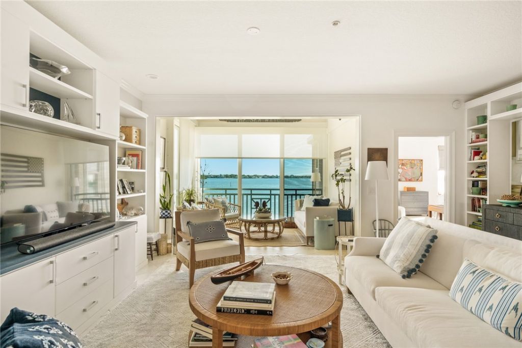 Stunning riverfront 3BR, 3 Bath Condo offering bright open space and sweeping views of the Indian River. Gorgeous Sunrise views. Custom built-ins by California Closets throughout. Updated Kitchen and Bathrooms. Property features a convenient under-building garage with two spacious assigned spaces plus a storage closet. A lovely Clubhouse, pool, work out area, library, and tennis/pickleball courts are all part of this Community.