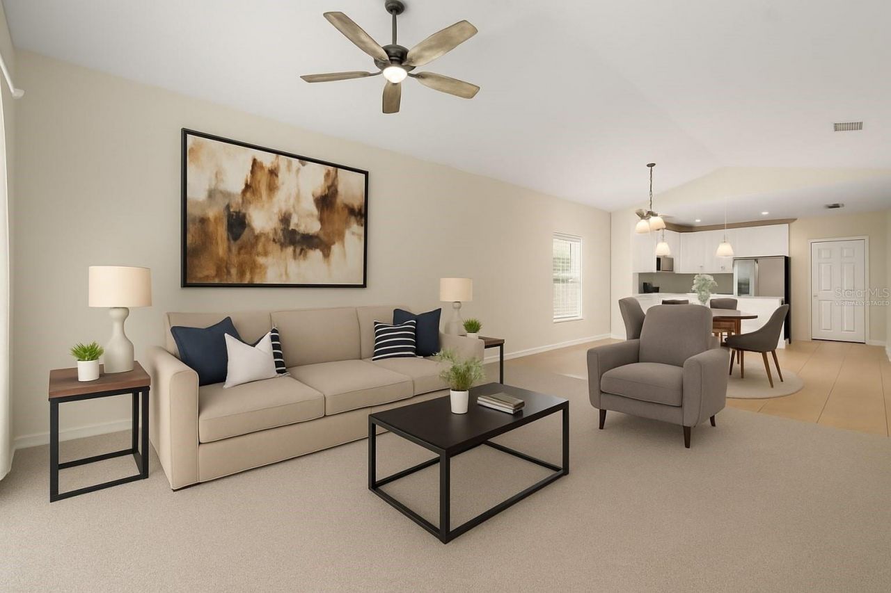Discover this freshly repainted one-story, 4-bedroom, 2-bathroom home with brand-new carpet and a 2-car garage in the heart of Groveland, featuring an open floor plan where the quartz countertop kitchen flows into the spacious family and dining areas, perfect for entertaining. Enjoy the comfort of an inside laundry room, a serene primary suite with en-suite bath, and a versatile outdoor space ideal for barbecues, gardening, or relaxing. Take advantage of community amenities including a dock, pool, playground, and picnic area, all while being conveniently located near major highways, shopping, and the turnpike-offering both tranquility and accessibility.