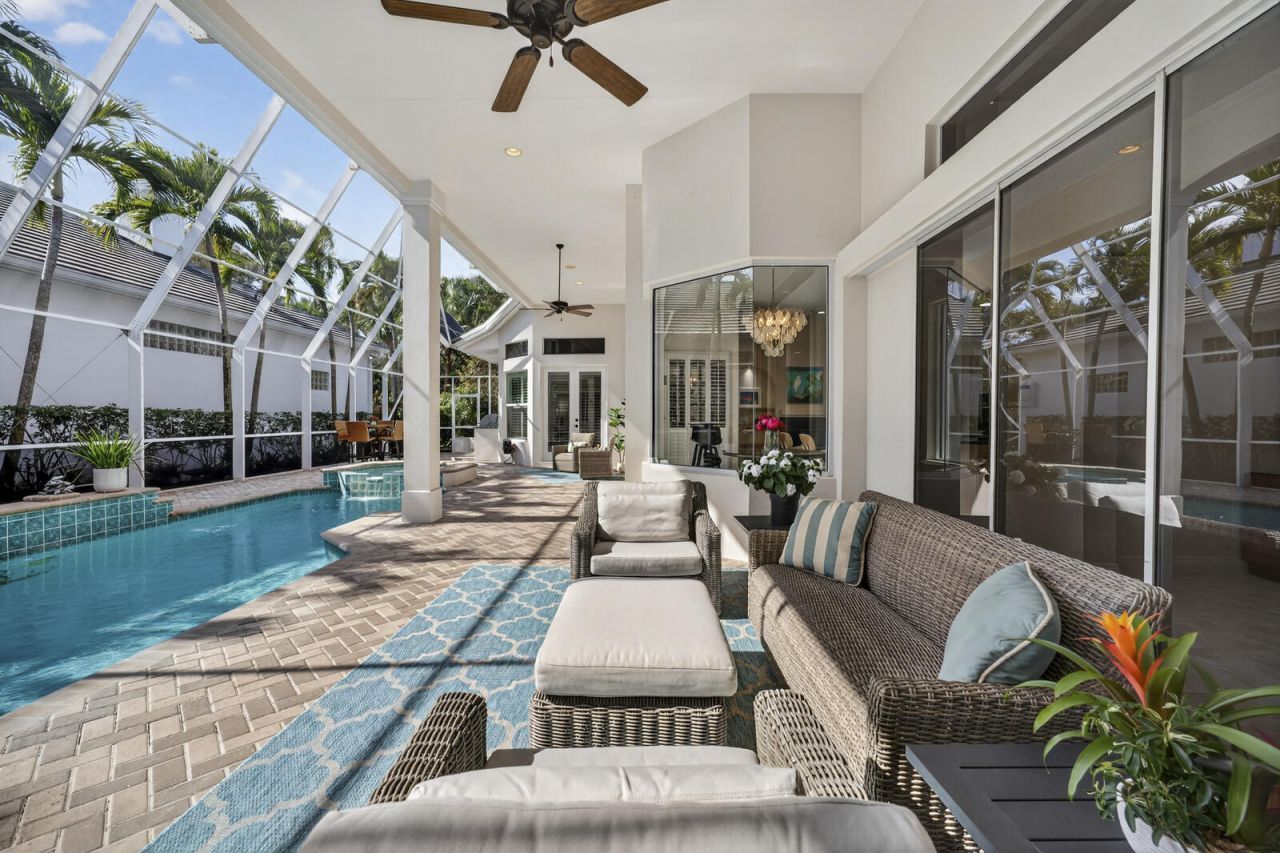 PRICED TO SELL!!! Prestigious gated community of 20 residences, steps away from the beach. The main living area includes a spacious primary suite opening to the pool, and a second en-suite. The guest house features 2 bedrooms and 2 baths, each with a separate entrance--ideal for multi-generational living or a home office. Designed for outdoor entertaining with five sets of pocket sliders flowing to the enclosed heated pool and spa. New Generac generator, 13 new impact windows, 2023 roof, 12' ceilings, and a fenced-in yard.