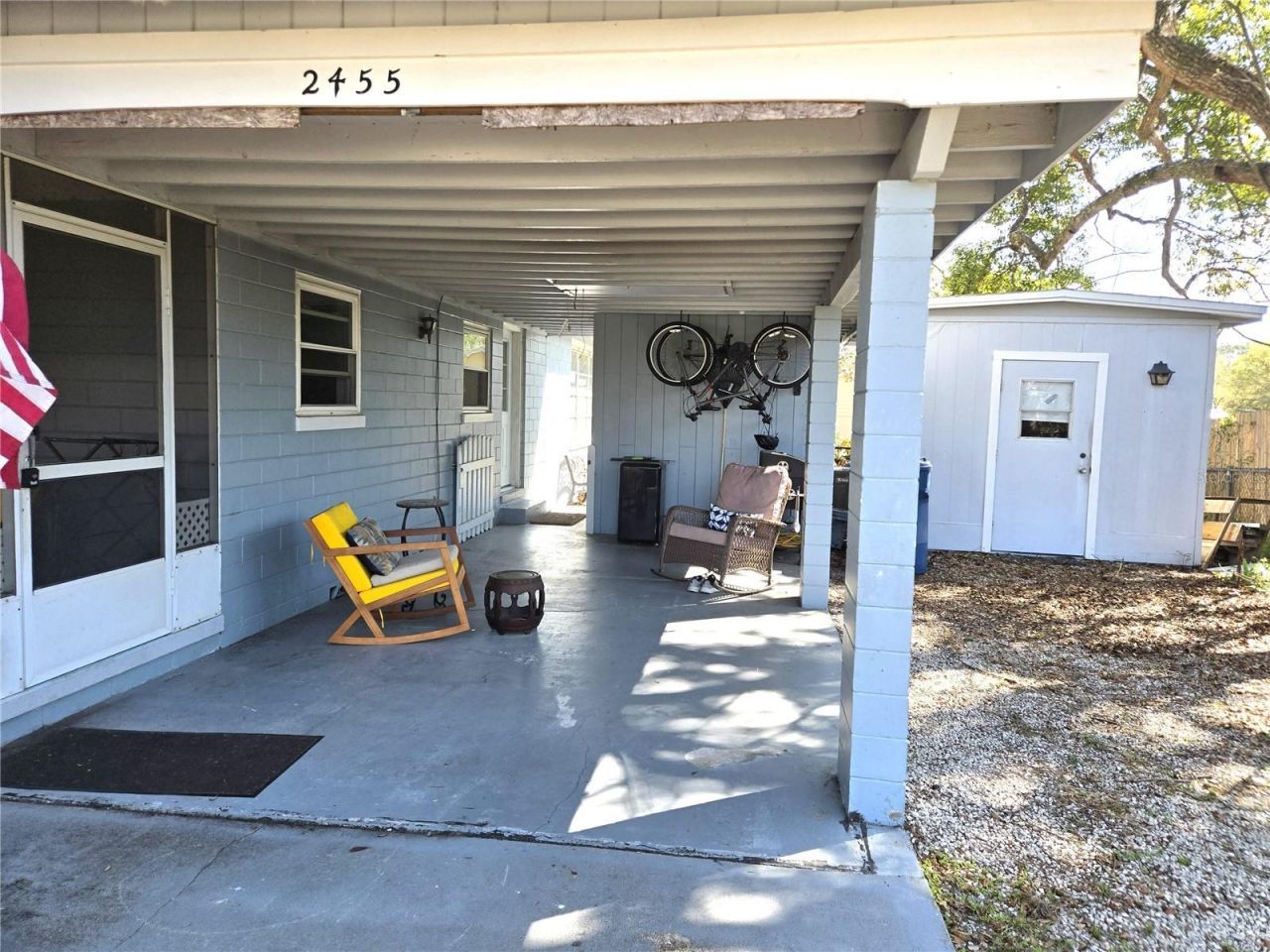 Welcome to this Classic Country Club Estate block home featuring two bedrooms, two bathrooms, and a large family room with, currently used as a bed room. This flexible bonus space is at the back of the house with lot's of natural light, ceiling fan and a barn door. The home features original hardwood floors, and new LVP in the family room. In the main bath is classic original tile and a true sense of Florida character. The remodeled kitchen adds modern convenience while maintaining the home's classic appeal. Primary bedroom has a primary bathroom. At the front of the home there's a screened-in front porch and entrance. You have a carport and an outbuilding for storage, and an additional shed and deck area out back in the fenced in yard, with beautiful oak trees offering shade and charm. Some windows are newer, and the AC is 6 years. Located just minutes from downtown, shopping, and dining, easy access to I-4, taking you quickly east or west to attractions or the beaches. *All information is intended to be correct. Agents and buyers must verify.*