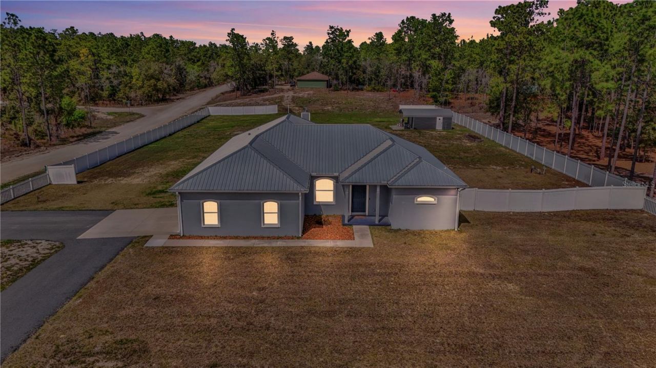 Custom built in 2022, this exceptional 3 bedroom, 2.5 bathroom home in Williston Highlands offers the perfect blend of quality, comfort, and country privacy on a fully fenced 1.25 acre lot. Inside, you will find luxury vinyl plank flooring throughout, custom real wood cabinetry, granite countertops, built in oven and microwave, a large island with farmhouse sink, built in closet systems, separate laundry room, and a real wood burning fireplace. Exterior features include a striking 8 foot entry door, side entry garage, metal roof, screened back porch, gutters, 8 zone irrigation system, a powered workshop or storage building, and RV prewire with water hookup already in place. With no HOA and convenient access to Williston, Gainesville, Ocala, Cedar Key, Devil's Den, Blue Grotto, and the World Equestrian Center, this property offers the space, flexibility, and lifestyle that are increasingly hard to find.