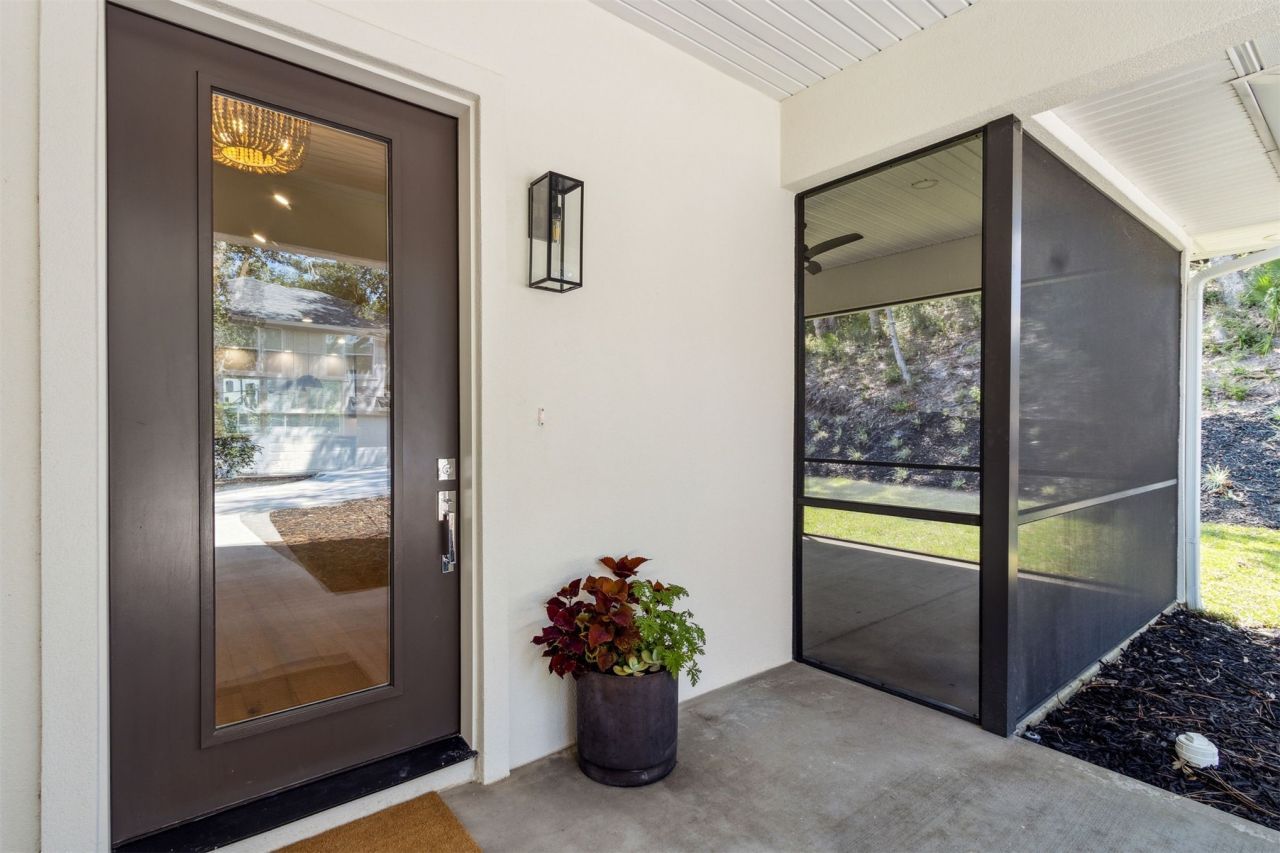 DUNE HAVEN at Egans Landing. BRAND NEW home in a seaside neighborhood. So close to the beach, youll go more often & stay longer. This one level home is set behind a beautifully established dune ridge on a homesite framed by mature oaks, magnolias, & palms. A dramatic drive hints at whats ahead, because you cant see the home from the road, & its anything but ordinary. Designed by local architect John Dodd. Inside, 15-foot vaulted ceilings &10-foot ceilings throughout keep the spaces bright & airy, while stacking sliders open wide to an oversized screened porch. The open layout flows easily from living to dining to the kitchen, where a large island & walk-in pantry make entertaining feel easy. The homes L-shaped design wraps around a future plunge pool location, or you can skip the maintenance & enjoy the community pool just up the street. A smart laundry/sand room helps keep beach life organized, & a bonus nook is ready for a coffee bar, wine station, or cozy work from home setup. The primary suite is a true escape with a tray ceiling, two closets, sliding doors, & a zen like bath featuring a soaking tub, double vanity, & walk-in shower. Wood & tile flooring, Andersen casement windows, & thoughtful details throughout round out the experience. Egans Landing residents enjoy lawn mowing, private streets, a community pool, and a dedicated walkway to Beach Access #29 via S. Casino.