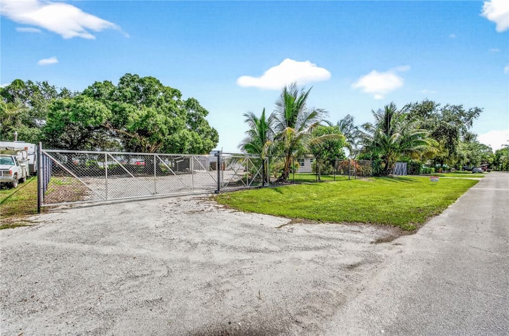 Fully fenced .38-acre CH-zoned property with tropical landscaping and two rolling gates. Includes a renovated 1BR/1BA home, 400-amp electrical service on property, perfect for residence or office conversion. Features an extra-tall 2-space covered pole barn for RVs, boats, trailers, or equipment, plus a 40 storage container with power set up as a shop or tool rom, 2nd oversized shed, and ample secure space for business operations or storage. Ideal for contractors, small business use, or live/work setup with commercial flexibility. Plenty of space to build another commercial building.