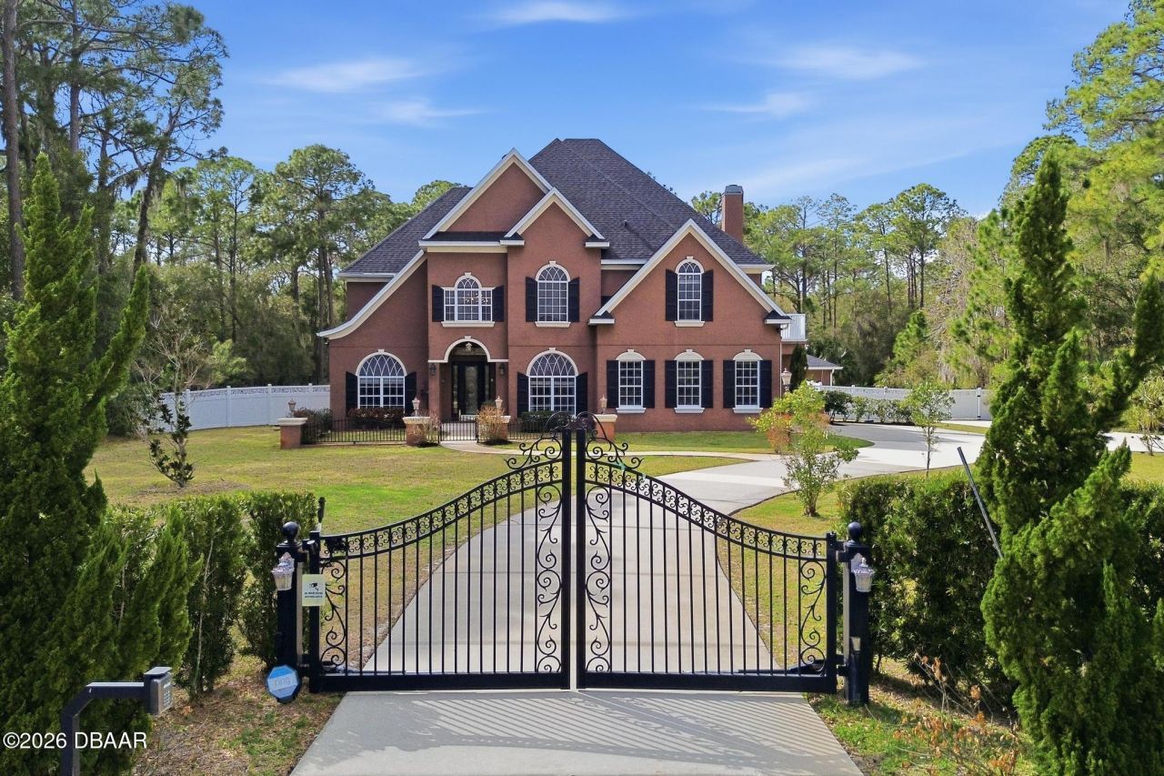 An exceptional custom estate set on nearly 2 secluded acres, offering privacy, sophistication, and resort-style living. A grand foyer with bespoke woodwork and a statement staircase welcomes you into a home designed for both elegance and comfort. The chef's kitchen is a showpiece, featuring a hidden walk-in pantry, gas cooktop, double ovens, dual sinks, and rich granite surfaces throughout. The owner's retreat delivers a true spa experience with an oversized walk-in shower, Jacuzzi soaking tub, and expansive walk-in closets. Step outside to your private oasis -- a heated pool and spa surrounded by serene grounds, enhanced by a new electronic gate and fencing for ultimate exclusivity. Adding extraordinary value, a newly built luxury 1-bedroom pool home (completed within the last year) offers ideal accommodations for guests, multigenerational living, or executive-style rental potential. Enjoy seasonal balcony views of the nearby St. Johns River.