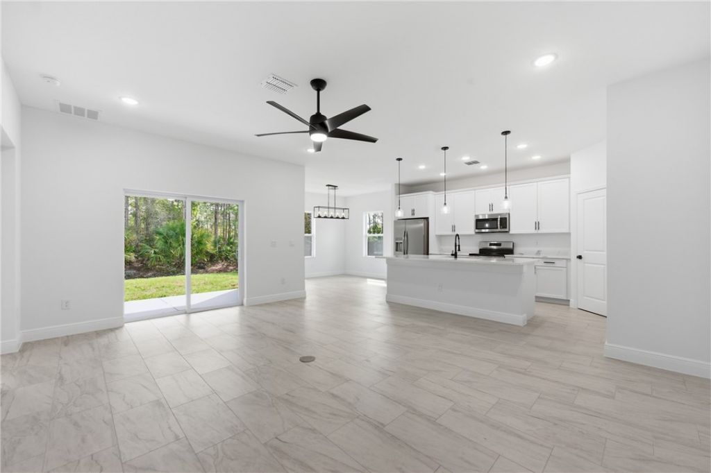 Move-in ready new construction!Concrete block with tile throughout and tray ceilings in the living room and primary suite. Kitchen with oversized quartz island, quartz countertops, soft-close shaker cabinets, stainless steel appliances, a walk-in pantry, and a designated dining area. The primary suite offers dual quartz vanities, a tiled walk-in shower, and a spacious walk-in closet. Sliding doors will let in a lot of natural light and provide easy access to the covered porch and backyard.2-car garage, impact windows and doors, county water, and underground electric. Corner lot with no HOA.
